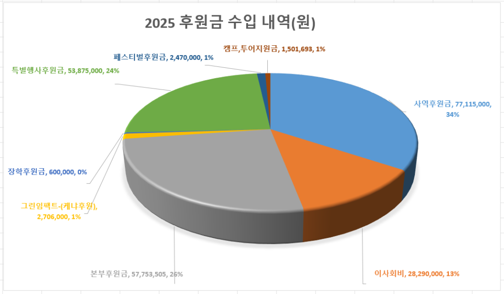 ◉ 본부지원금: 55,960,000 ◉ 이사회비: 43,847,500 ◉사역정기후원금: 11,425,000 ◉ 사역일시후원금: 2,465,000