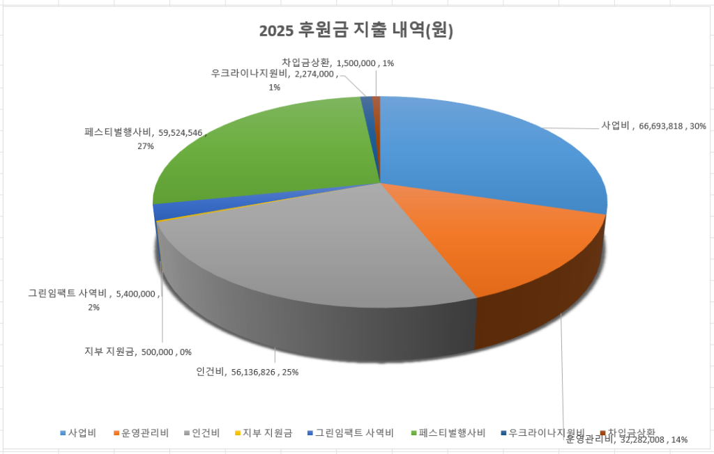 ◉ 사업비 및 운영관리비:92,472,490 ◉ 인건비:69,784,212 ◉ 지부지원금: 2,400,000 ◉ 케냐지부지원 및 사역비:10,894,583